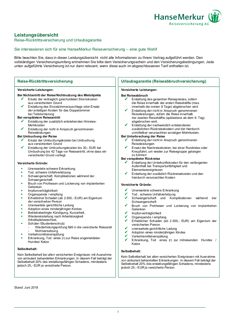 Schützen Sie sich vor hohen Stornokosten mit unserer ReiserücktrittsVersicherung. Wir bieten Ihnen einen optimalen Versicherungsschutz, falls Sie Ihre Reise absagen müssen. Mit der Reiserücktrittsversicherung sichern Sie Ihre gebuchte Reise vor Reiseantritt und mit der Urlaubsgarantie einen Reiseabbruch im Urlaub ab – und das weltweit.